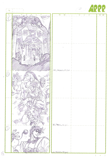 I also find the storyboards that were used in the OVA's special features to be interesting. The narration that accompanied them in the special feature was done by Michael Bennett, who voiced Joseph Joestar in the Stardust Crusaders OVA's English dub. These storyboards are likely the closest things we'll get to seeing some classic JoJo moments in the OVA's artstyle - at least, until we find the Phantom Blood film.
